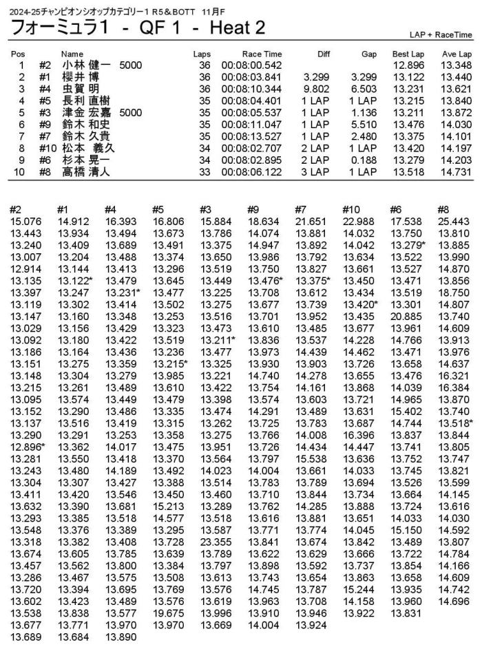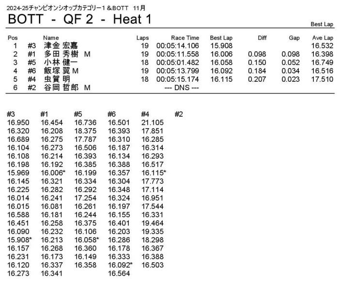 2位もナローシャーシの津金選手選手