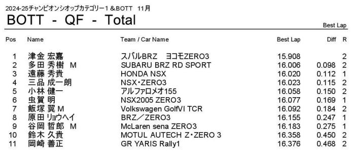 2位は2回目をトップゴールしましたがタイムで惜しくも岡崎選手