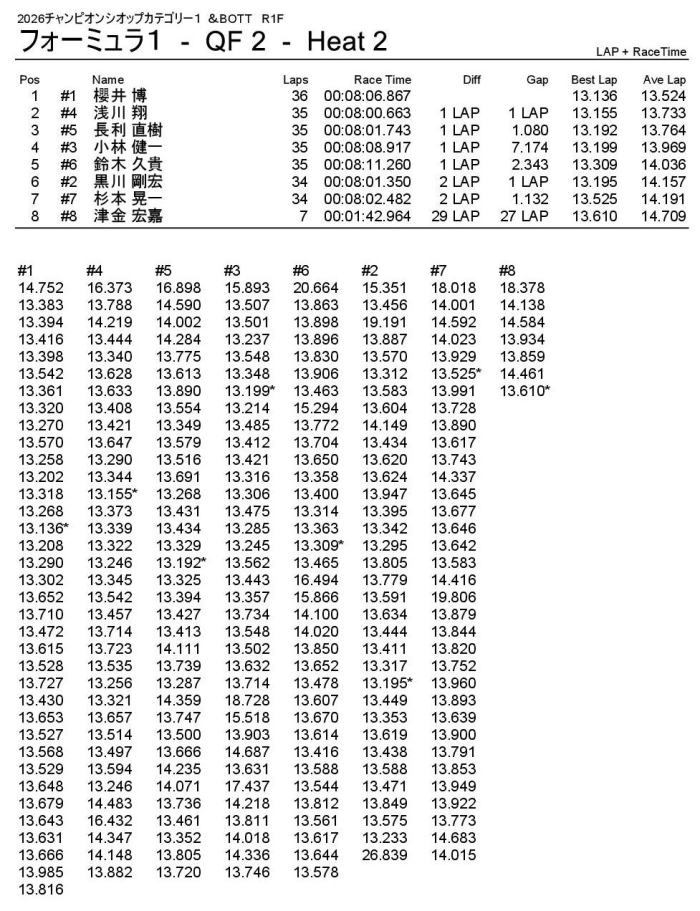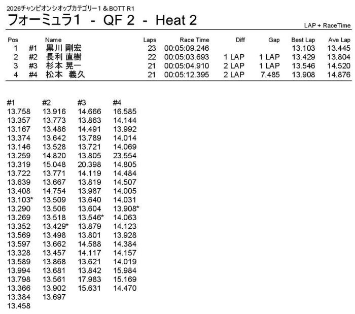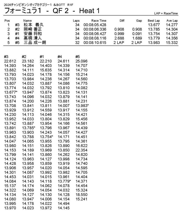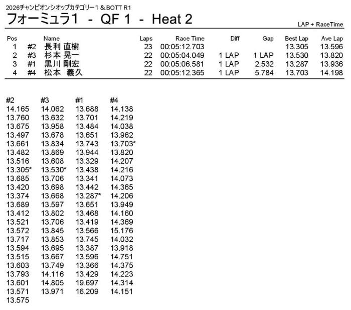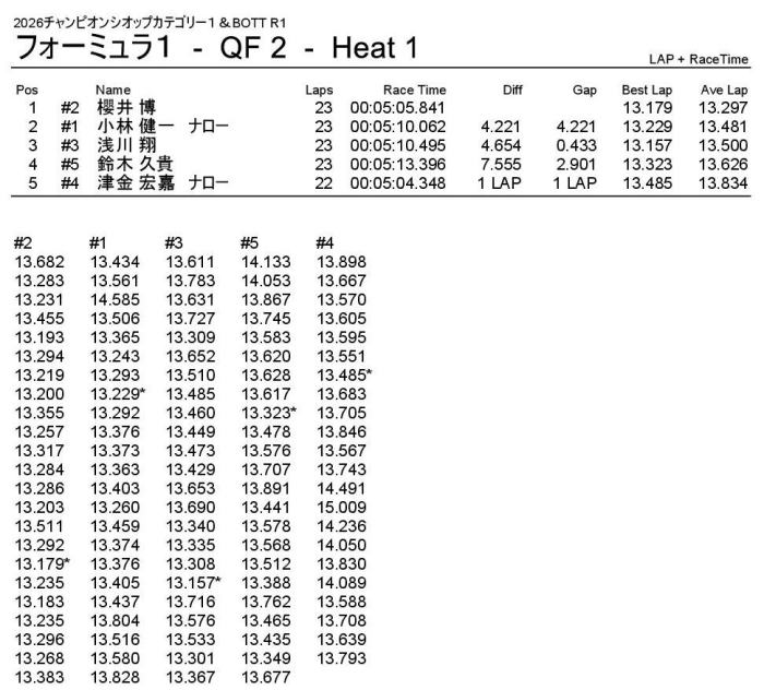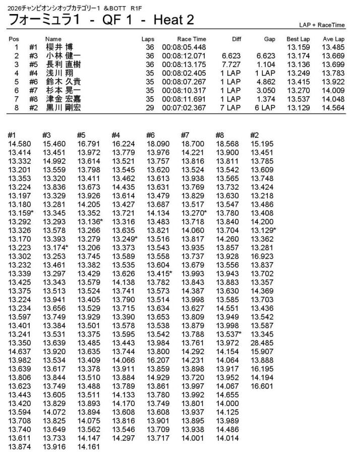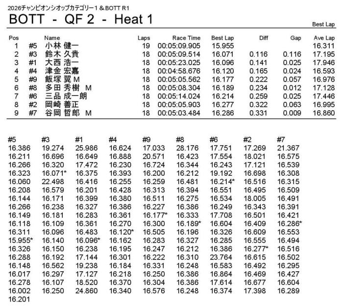 2位はナローシャーシで1回目を2位ゴールした小林選手