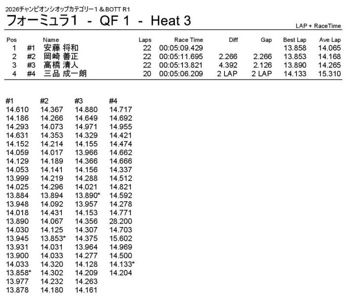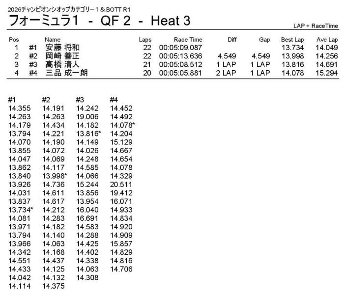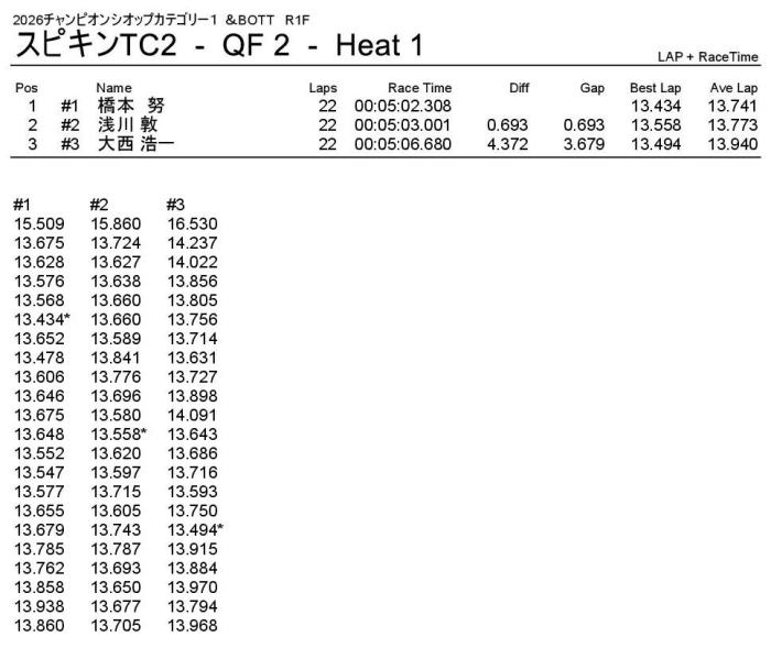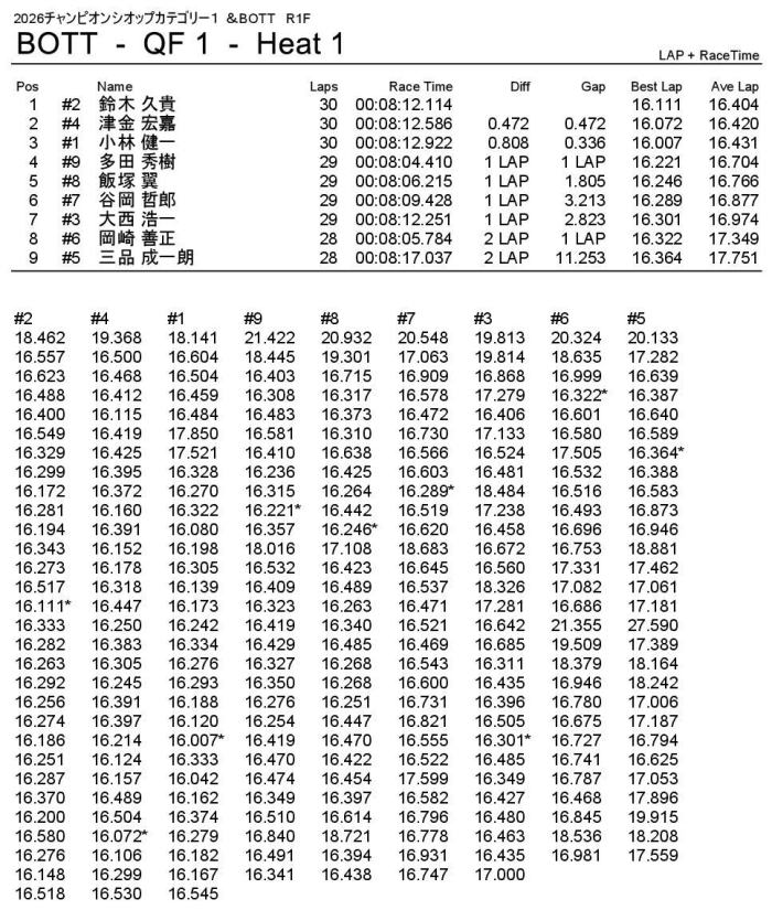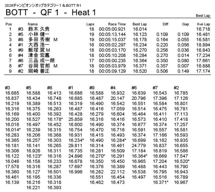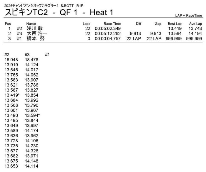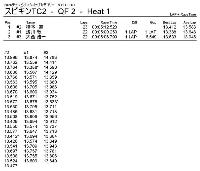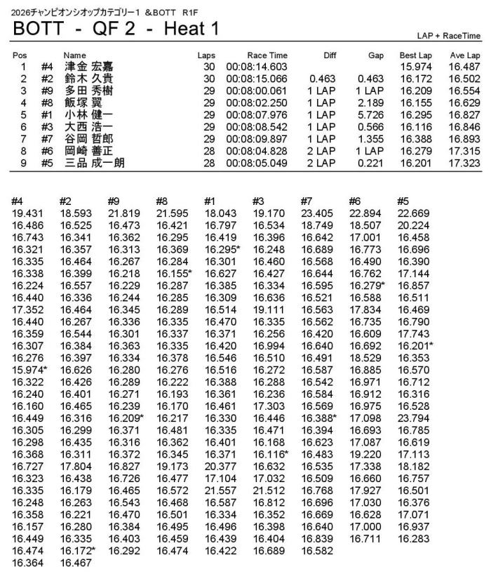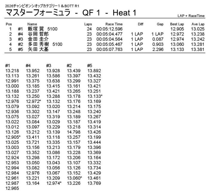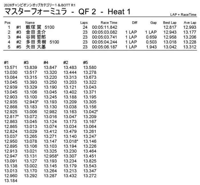 優勝は回転数ハンデをものともぜずパーフェクトWINの飯塚翼選手