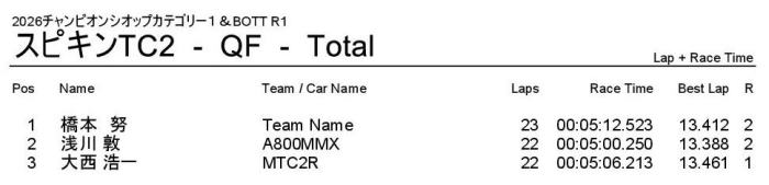 2回目を制した津金選手が2位