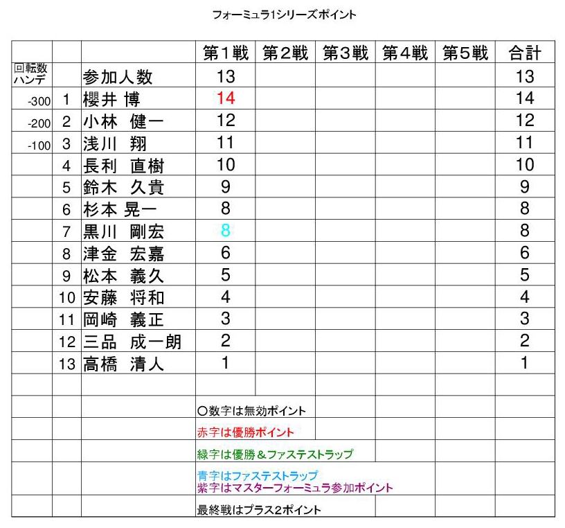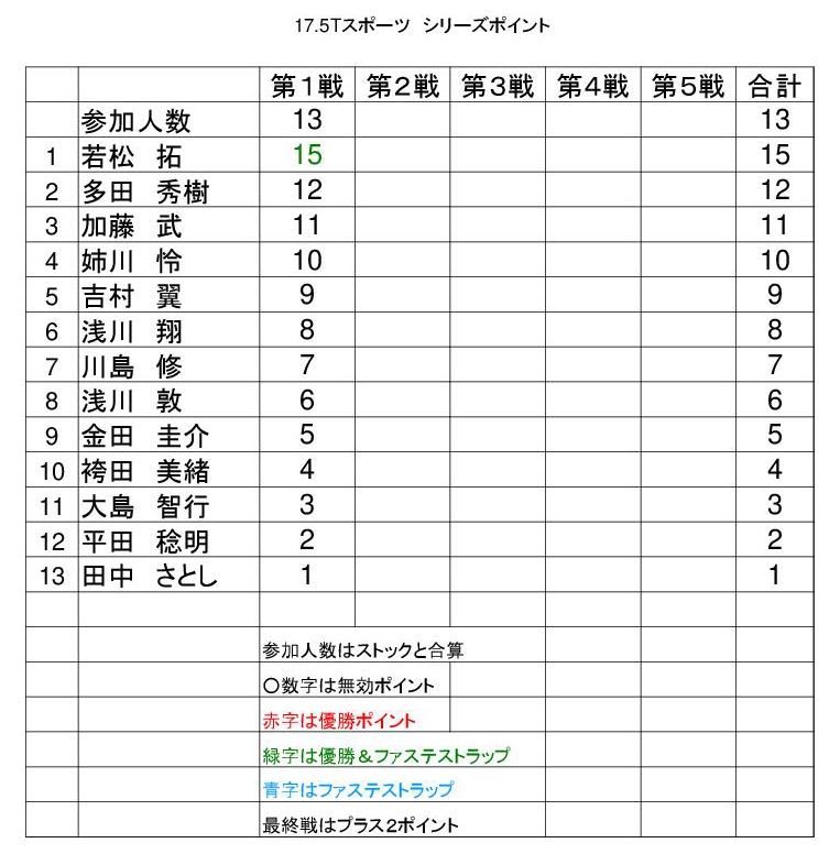 レースポイントは有効7戦、ポイントの低い所3戦が無効ポイントとなります