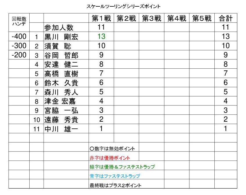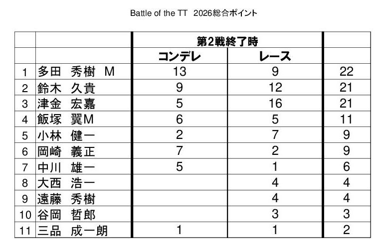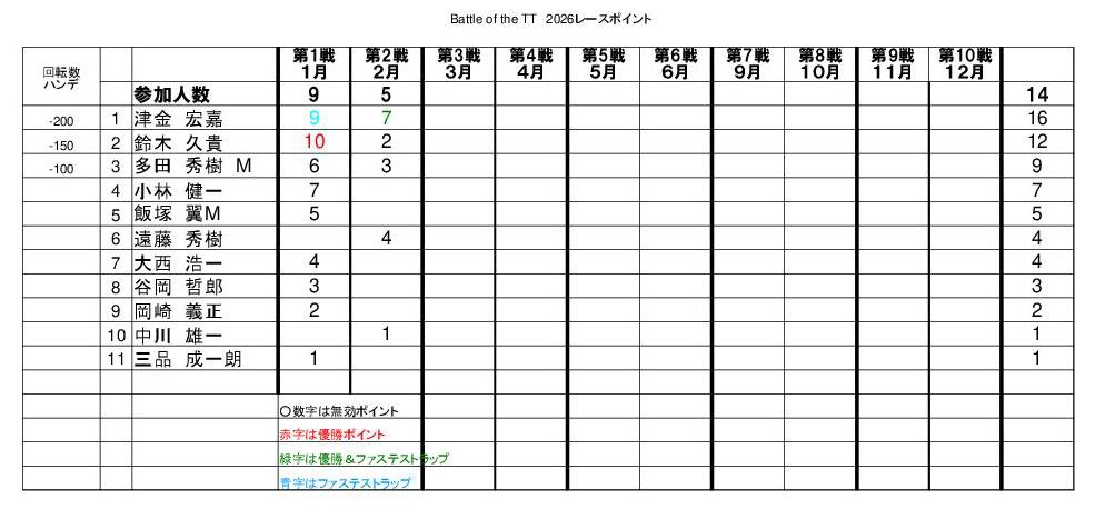 最終戦のみ参加人数にプラス2ポイントが付加されます