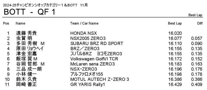 2位は2回目をトップゴールしましたがタイムで惜しくも岡崎選手