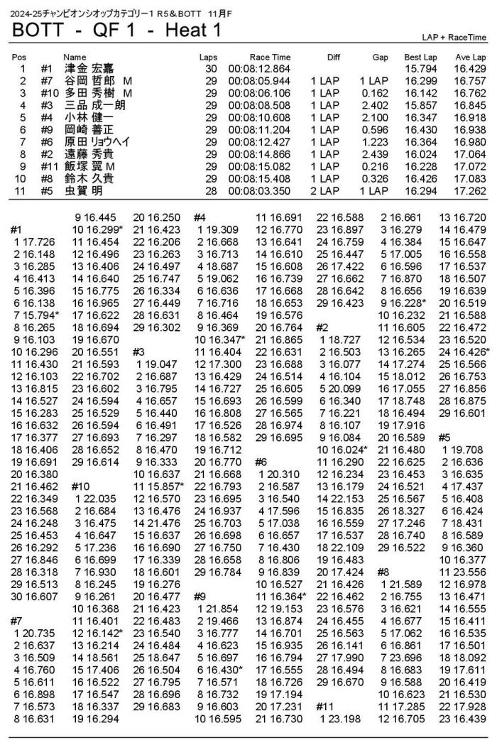 2位もナローシャーシの津金選手選手