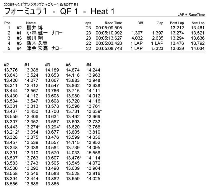 2位はナローシャーシで1回目を2位ゴールした小林選手