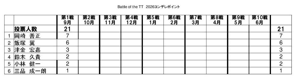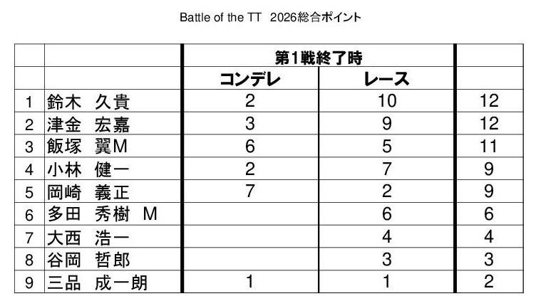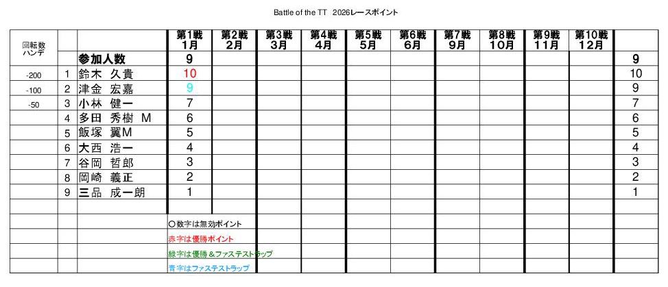 最終戦のみ参加人数にプラス2ポイントが付加されます